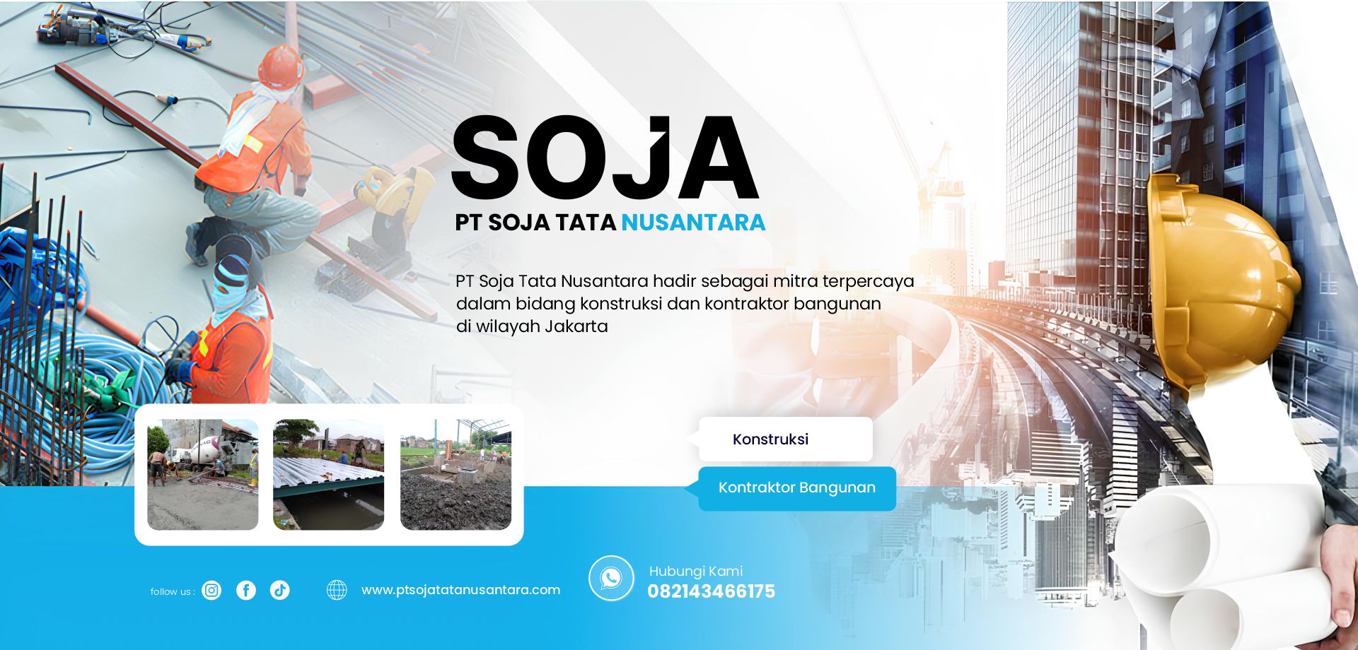 PT Soja Tata Nusantara adalah perusahaan yang bergerak di bidang konstruksi dan kontraktor bangunan, berkomitmen untuk menghadirkan solusi terbaik dalam pembangunan yang inovatif, berkualitas, dan berkelanjutan. Dengan pengalaman dan keahlian di industri konstruksi, kami melayani berbagai proyek, mulai dari pembangunan perumahan, gedung komersial, hingga infrastruktur skala besar. Kami mengutamakan standar kualitas tinggi dalam setiap tahap pengerjaan, mulai dari perencanaan, desain, hingga eksekusi pembangunan.